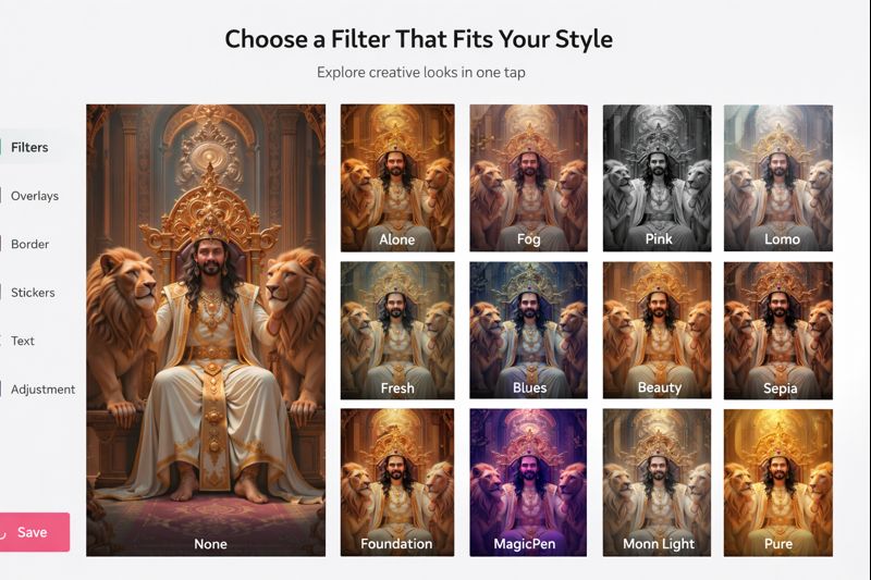 Apply different filters to enhance the look of your photo. Browse through the available options and tap on any filter to preview it instantly.