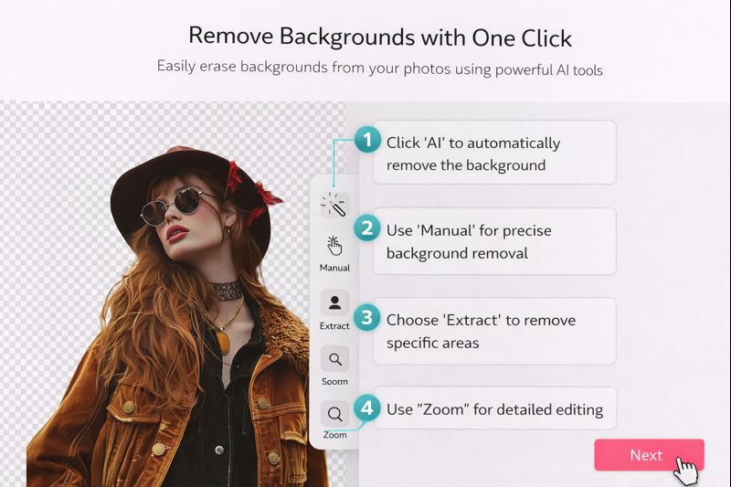 Select Extract to keep a specific part of the image while removing the rest. This is useful for detailed cutouts.